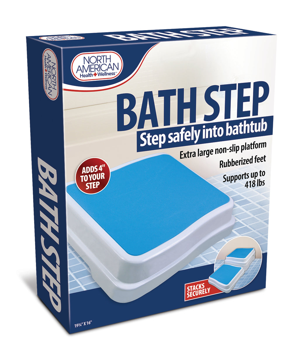 Added safety and security when stepping in and out of the bathtub * Extra large platform for in and out ease * Completely textured finish top for slip resistant safety and comfort * Rubberized feet to help prevent slipping * Modular design for secure stackability * First step adds 4 – each additional step can go on top and adds 2 * Weight capacity: 418 lbs *